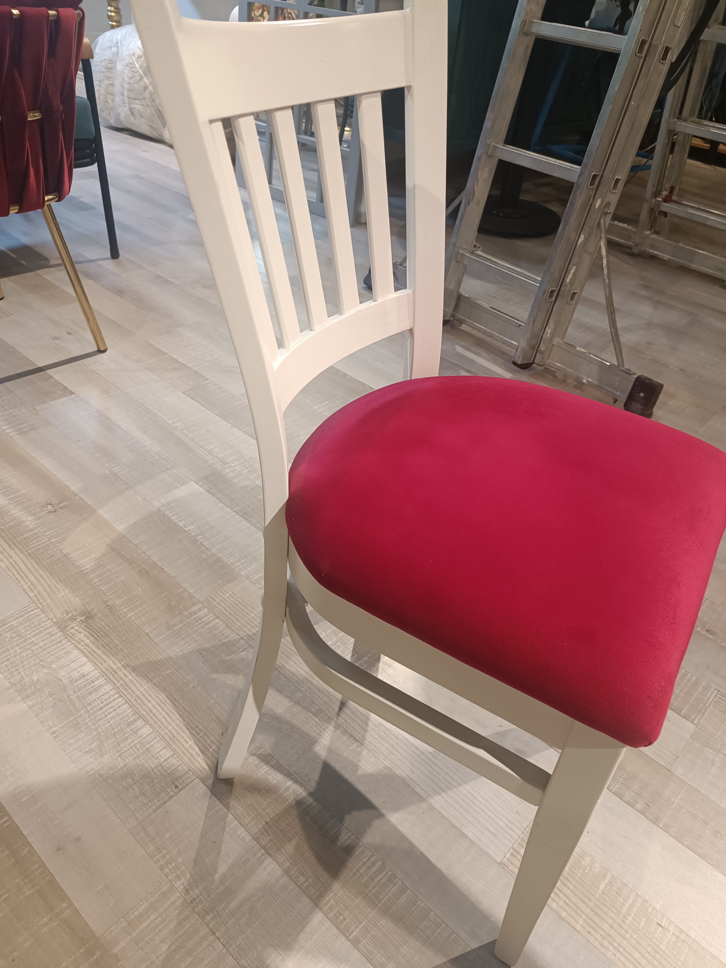 · Mercan Mobilya beyaz ahşap sandalye modern ve minimalist tarzda mobilyalarınıza uyum sağlayarak evinize ferahlık ve zarafet katar. Kadife minderinin yumuşak dokusu uzun oturumlarda bile konfor sunar.